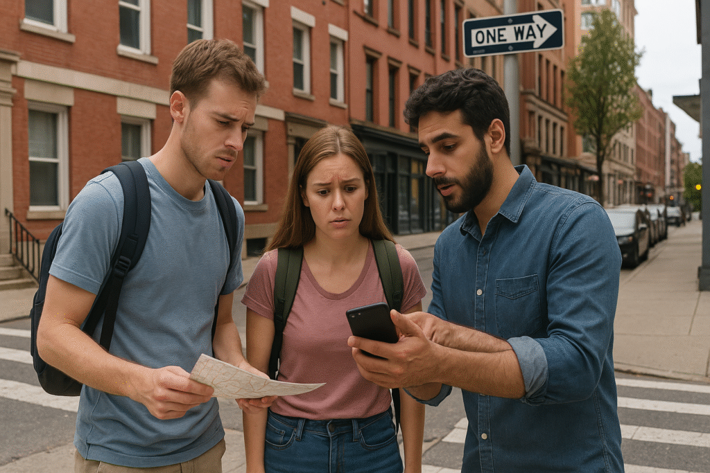 A Excuse me, can you help us, please? We’re lost, and my phone just died.